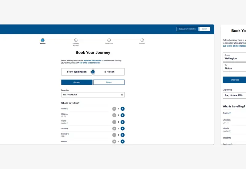 Working with KiwiRail and their design partners, the Edge Team transformed the booking experience so that people could purchase ferry tickets in a way that was quicker and more intuitive and similarly effective for both on PC and mobile devices.