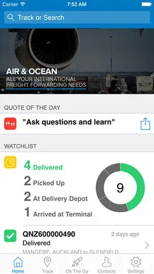 Mainfreight prides itself on its culture and unique team spirit that is the foundation of its competitive advantage. The app aims to reflect these unique characteristics with features sections on the homescreen for promoting Mainfreight stories, services, quotes of the day, news, and an investor centre.